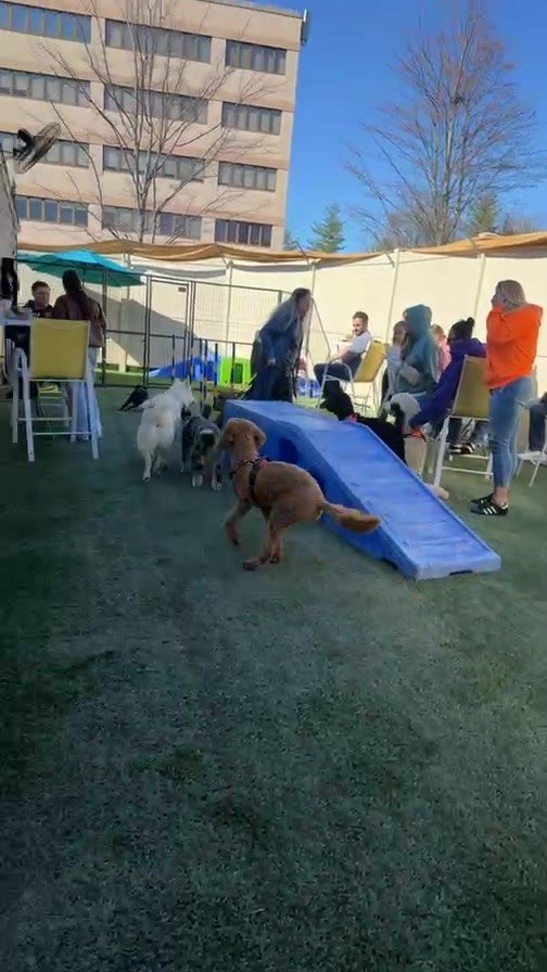 Dogs play. Humans stay. Everyone has fun.
