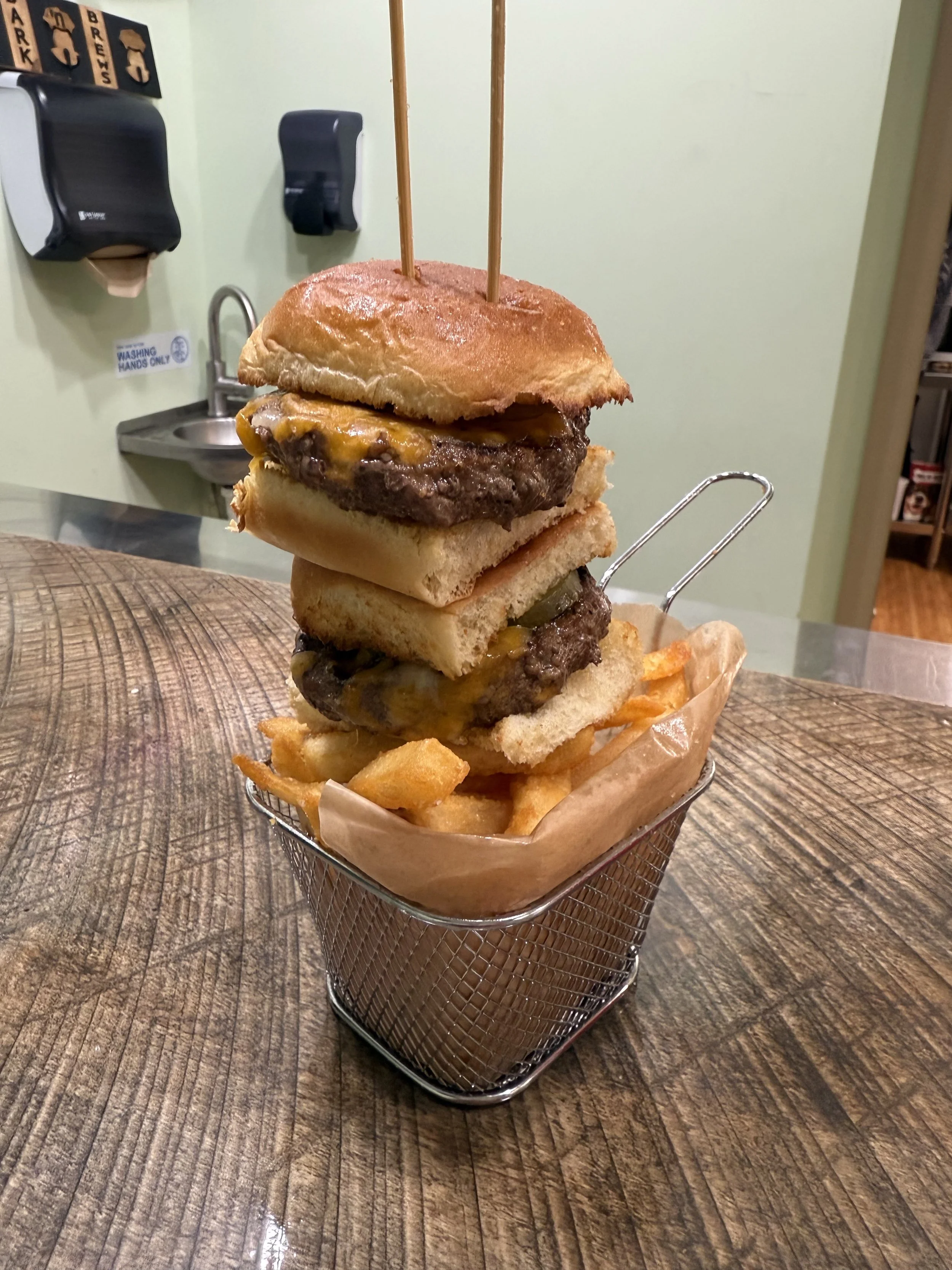 From loaded fries and slider towers to tacos and weekend brunch favorites, our menu is built for sharing, sipping, and relaxing. Grab a craft beer, cider, wine, or canned cocktail, settle in with friends, and enjoy great food while the pups run, romp, and make new friends nearby.